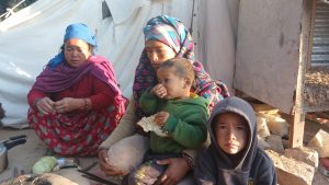 मायाका श्रीमान भरत बुढा गाडी चलाउँथे तर गत भदौमा एक्कासी आत्महत्या गरेर प्राण त्यागेपछि उनको परिवार विचल्लीमा परेको हो । सासुससुरा विरामी हुनुहुन्छ । सात र तीन बर्षका दुई छोराहरु सानै छन् । ससुरा पदम बहादुर बुढा मृगौला रोगी र सासु राधिका दमको विमारी हुनुहुन्छ । काम गर्न सक्नुहुन्न, मायाले भनिन्–‘कुशे गाँउपालिकामा रहेको घर भुकम्पले ढल्यो । सदरमुकाम खलंगामा भाडामा बस्ने घर पनि भुकम्पले भत्काइ दियो । चर्केकै घरमा बसिरहेका थियौ । श्रीमानको मृत्युपछि कोठा भाडा तिर्ने पैसा नभएपछि सार्वजनिक जग्गामा त्रिपाल टाँगेर गुजरा चलाइरहेका छौ । एकसरो लुगाले रातभरको सिरेटो र शीत छल्नै सक्दैन । चिसोले निन्द्रै पदैन । न खाने गास छ न बस्ने बास नै । न त रोजगारी छ न अन्य केही कमाई र आम्दानी ।’